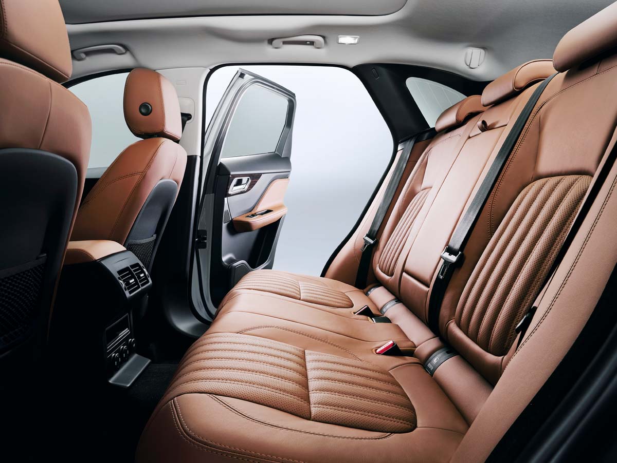 F-Pace擁有4731/1936/1651mm車身尺碼及2874mm軸距設定,在真皮座椅鋪陳下提供舒適的乘坐品質,為滿足買家購買休旅車需求,F-Pace充裕的空間環境更讓後座乘員獲得寬敞的乘坐感受。除此之外行李廂方正的空間格局與508公升置物空間,更提供實用的置物表現,搭配4/2/4後座分離設計,不僅展現豐富機能性,倒放後更提供寬敞的置物環境。