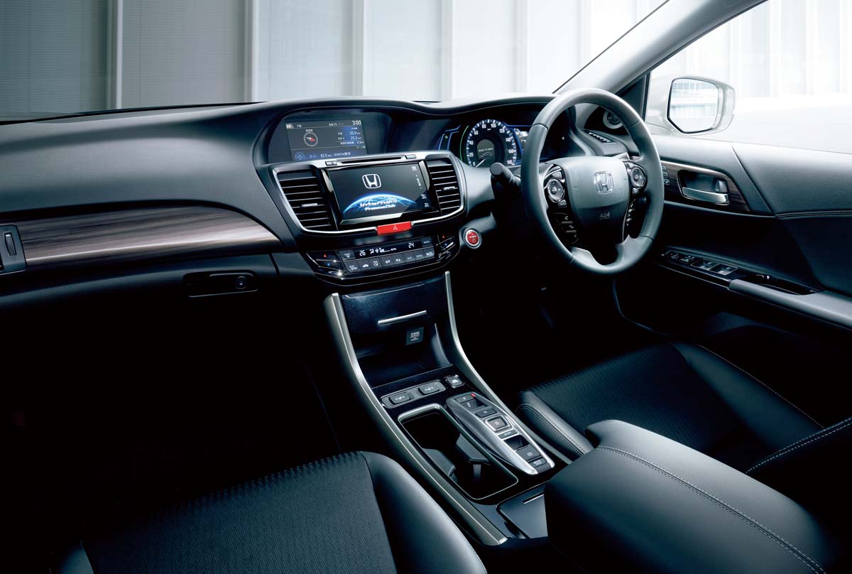 | 小改款Accord Hybrid的內裝除將觸控螢幕加大至7吋外,最大改變之處則是將傳統排檔桿改成按鍵式的設計。(圖為日規車型) |