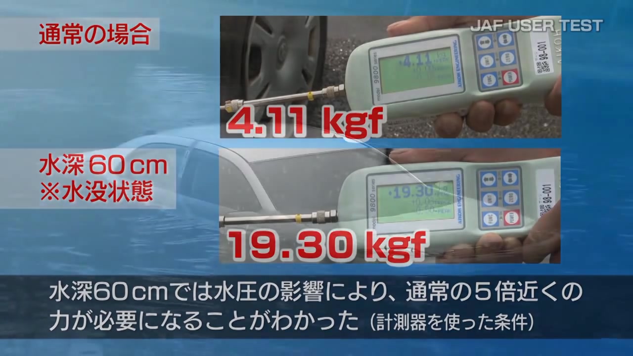 | 水淹60cm時開車門會碰上的重量,將近是一般的五倍 |