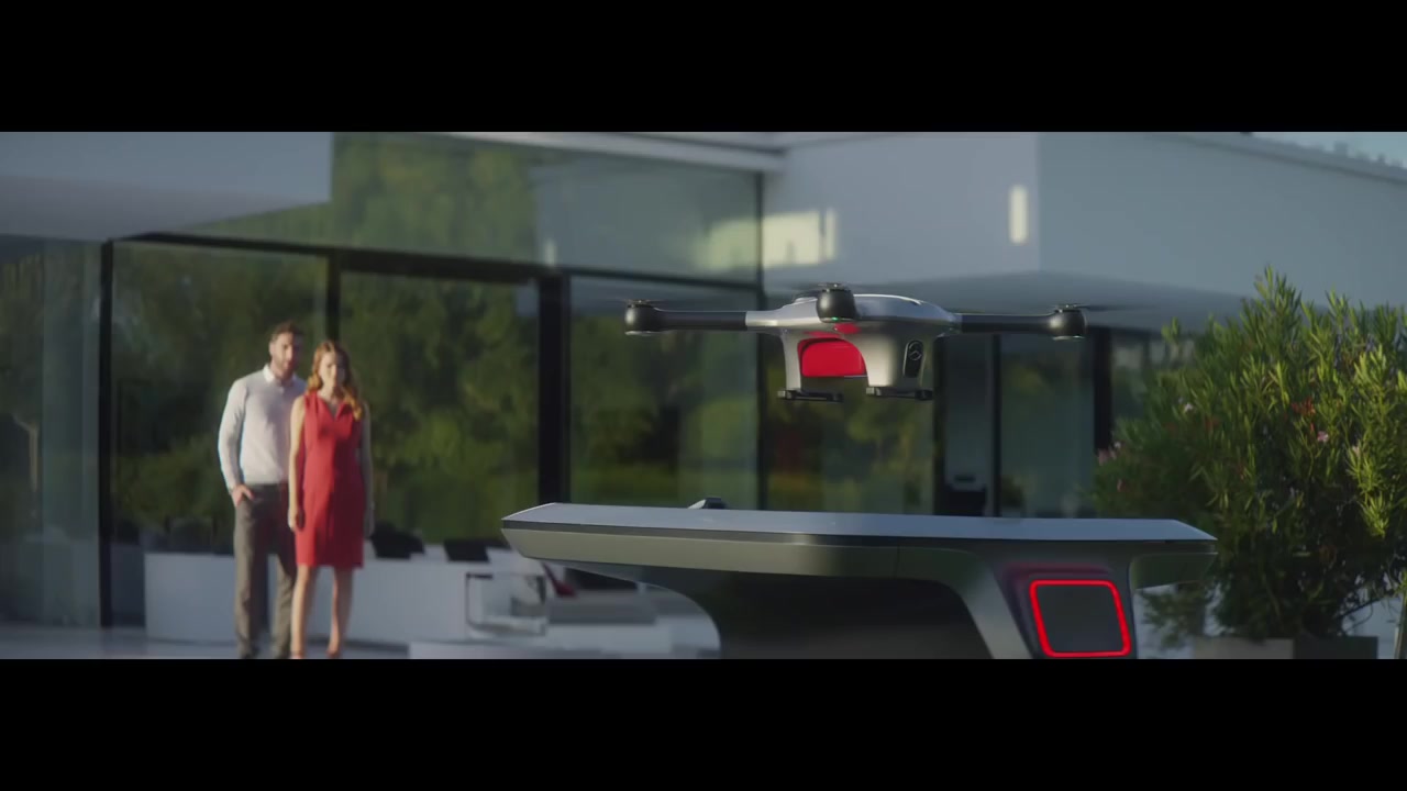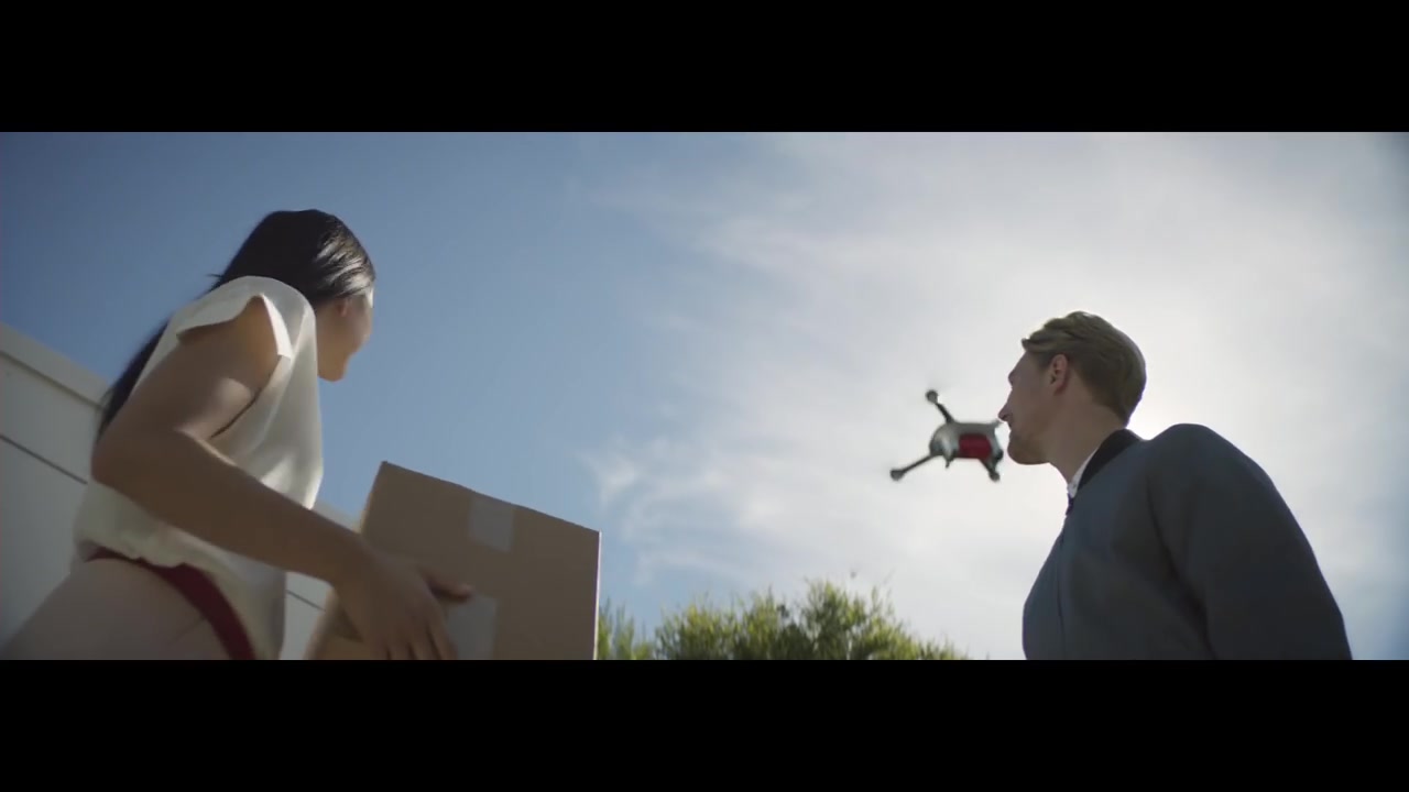 | 大的貨由司機親送,小件物品,就由貨車上的飛行器夾好,飛去地點下貨 |