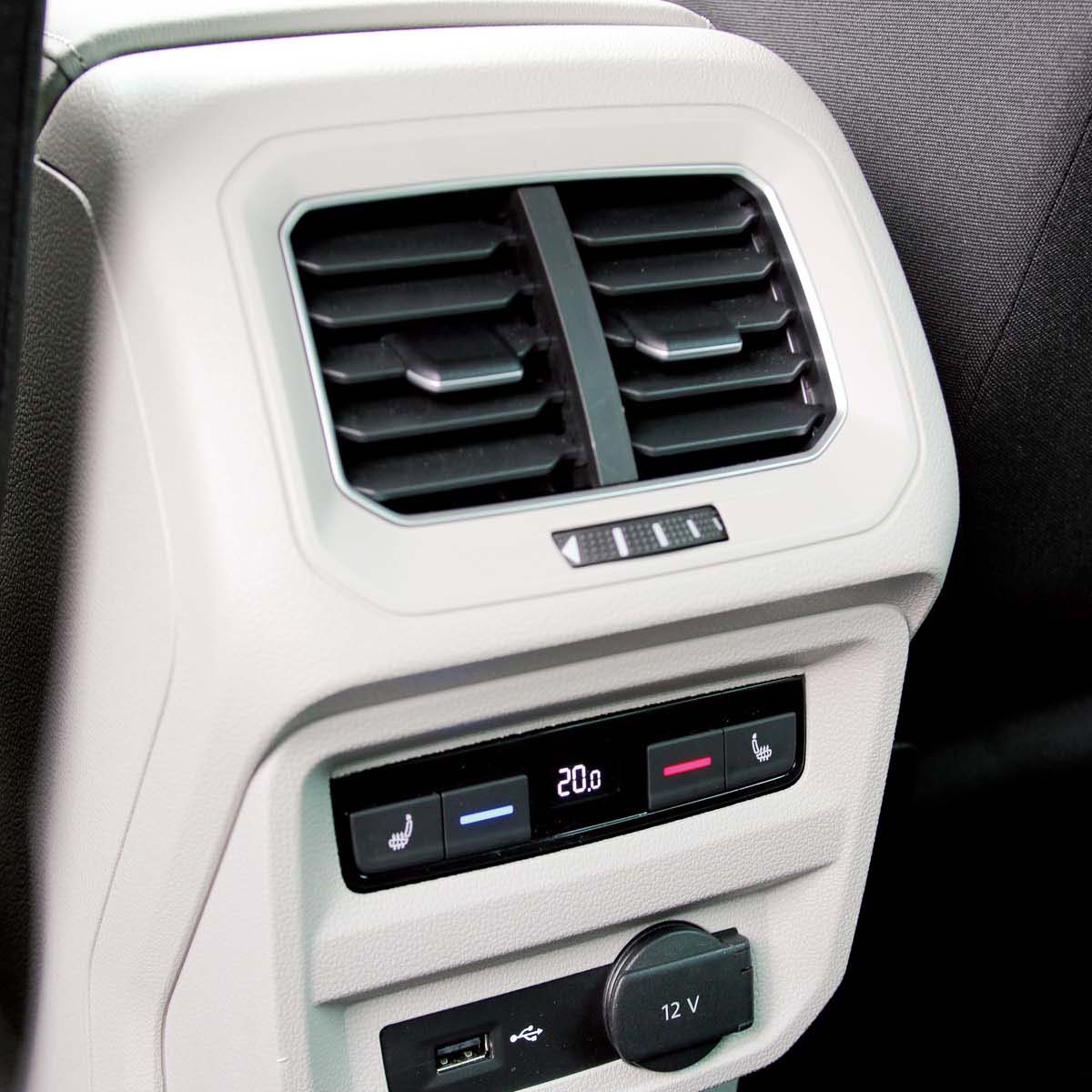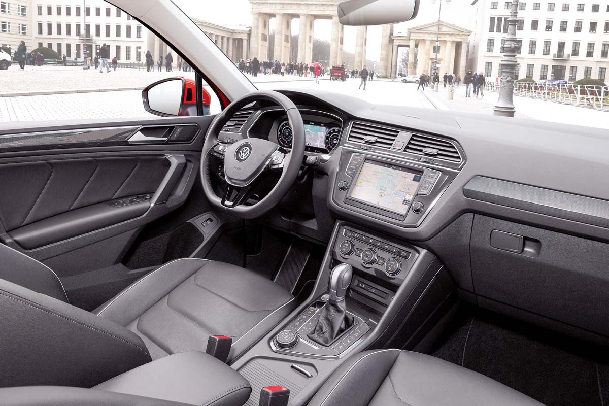 車室內的車艙設計、乘坐舒適與空間機能性的改善也是New Tiguan的開發重點。呼應外觀設計,New Tiguan的內裝風格也大幅革新,整個座艙的線條、質感及用料搭配,都有向Passat看齊的表現。表面壓花細膩的塑料件搭配大面積烤漆飾板與細部點綴的霧面鋁合金飾件,搭配全真皮或類麂皮/真皮座椅,坐進車艙內就能感受到高級化的質感。化繁為簡也是目前車輛操作介面的潮流,8吋觸控式主機將所有多媒體相關功能整合,而攸關車艙舒適性、最常使用的空調介面則獨立出來,透過直覺式操作的按鍵及旋鈕,方便駕駛者進行控制。後座出風口未來在台灣引進的1.4 TSI TL車款上即為標準配備,這對後座乘客堪稱夏季貼心好物,而在2.0 TDI HL/2.0 TSI HL上,三區恆溫空調則列入標準配備。