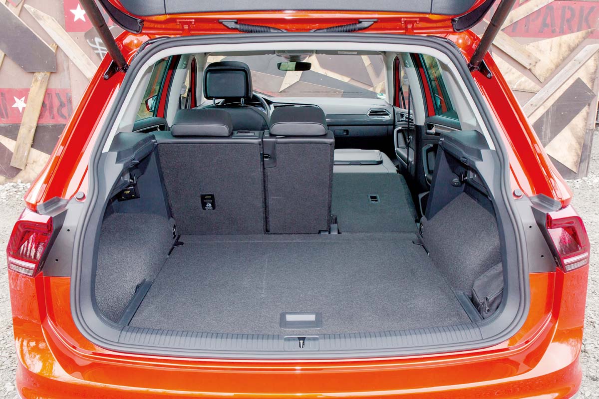 相較前一代車型,New Tiguan的行李廂空間增加145公升而達到615公升之譜,若是這樣的空間還不夠用,只要輕拉後廂兩側上的快速拉柄將椅背傾倒,便能一舉擴充到1665公升!除了空間擴充性與後座椅背快速傾倒功能外,感應式尾門開啟功能也是未來台灣New Tiguan 1.4 TSI CL等級(含)以上的新配備,只要隨身攜帶感應式車鑰,站在尾門後把腳伸到後保桿下方感應,尾門便會自動開啟,堪稱大買場血拚好幫手。New Tiguan除了內外造型、質感、配備、空間機能等全面進化之外,這次大改款也在行車安全上新增多項主動安全科技,包括市區行車相當好用的主動式前方車距偵測/煞停的Front Assist+City Emergency Braking,保護行人及單車騎士安全的行人偵測系統、主動式防護引擎蓋,避免事故發生後加重傷害的二次碰撞預煞系統等。