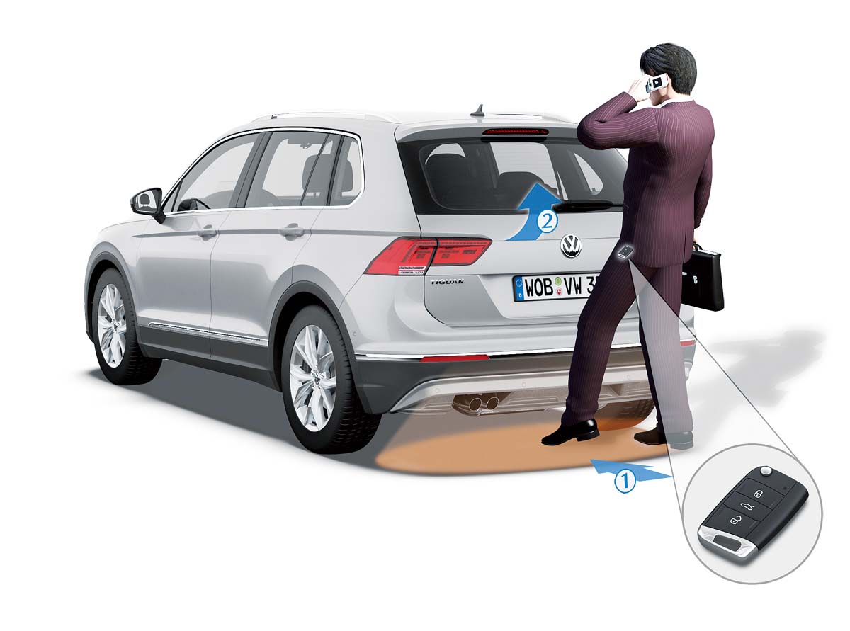 | 感應式車鑰搭配足踢式感應開啟尾門是個流行又實用的配備,New Tiguan這次也沒漏了它! |