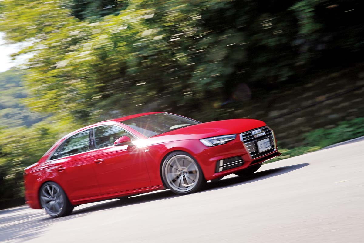 大改款的A4 45 TFSI採用VAG集團旗下全新第二代的MLB模組化平台打造,使用了輕量化複合材質打造車體,整體車重共減輕了120kg,再加上45 TFSI車型一律標配quattro四輪驅動系統,無論動力及操控表現都更為出色。A4 45 TFSI標配了Audi Drive Select,一共有節能、舒適、自動、動力、自訂等五種模式,筆者當然不假思索直接將其切換至Dynamic動力模式,從油門踩下去的瞬間,便能感受到飽滿的動力輸出,隨著油門愈踩愈深,伴隨而來的則是紮實的貼背感及厚實聲浪,當筆者回過神來瞄了下時速錶,才發現車速已上看160km/h,且絲毫沒有重拖無力之感,車身依舊牢牢地貼著地面,看來官方數據極速達250km/h所言不假。