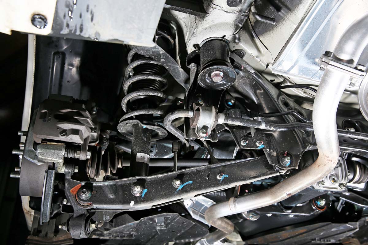 Impreza的懸吊設計也是很特別,前輪為常見的麥花臣結構,但為了運動性,後輪沿用上一代的雙A臂形式,而且將後輪往後拉到接近後保桿的位置,讓動態操控反應更加靈活、快速,若是有改裝避震器的需求時,需注意彈簧與減震筒阻尼的搭配,畢竟掀背車型增加了載重機會,該如何兼顧空車與載重時的駕車感,避震器於設定時需要多下點功夫,此外,許多車主會改裝加粗防傾桿以提升操控穩定性,雖然Impreza可流用STI防傾桿,可是不建議一併改裝避震器與防傾桿,這樣會讓底盤拉扯力量過大,反而會造成行車危險。