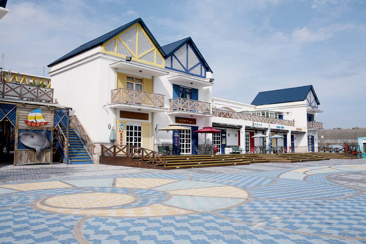 | 向日廣場鄰近花蓮漁港,可品嘗到東海岸最新鮮的漁獲,歐風廣場建築讓人彷彿置身地中海,慵懶地坐在陽傘下享受咖啡與鮮魚的搭配,看似衝突的美味意外合拍。