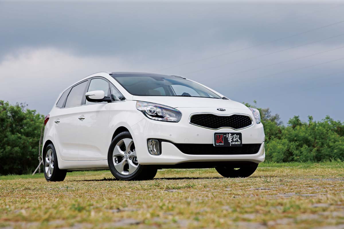 ●定價 84.9~109.9萬元●級距 國產5~7人座MPV轎式休旅車●長X寬X高4525X1805X1610mm●動力 1.7升四缸渦輪柴油引擎;馬力141.4hp/4000rp;扭力34.7kgm/1750~2500rpm●油耗 17.2~17.4km/L●Carens為目前唯一國產化7人MPV,除了強勁省油的柴油引擎之外,自89.9萬柴油科技版即配置6具氣囊,循跡防滑則為全車系標準配備。空間上,第三排傾倒可換取充足乘載空間,7人乘坐也不是問題?p>>