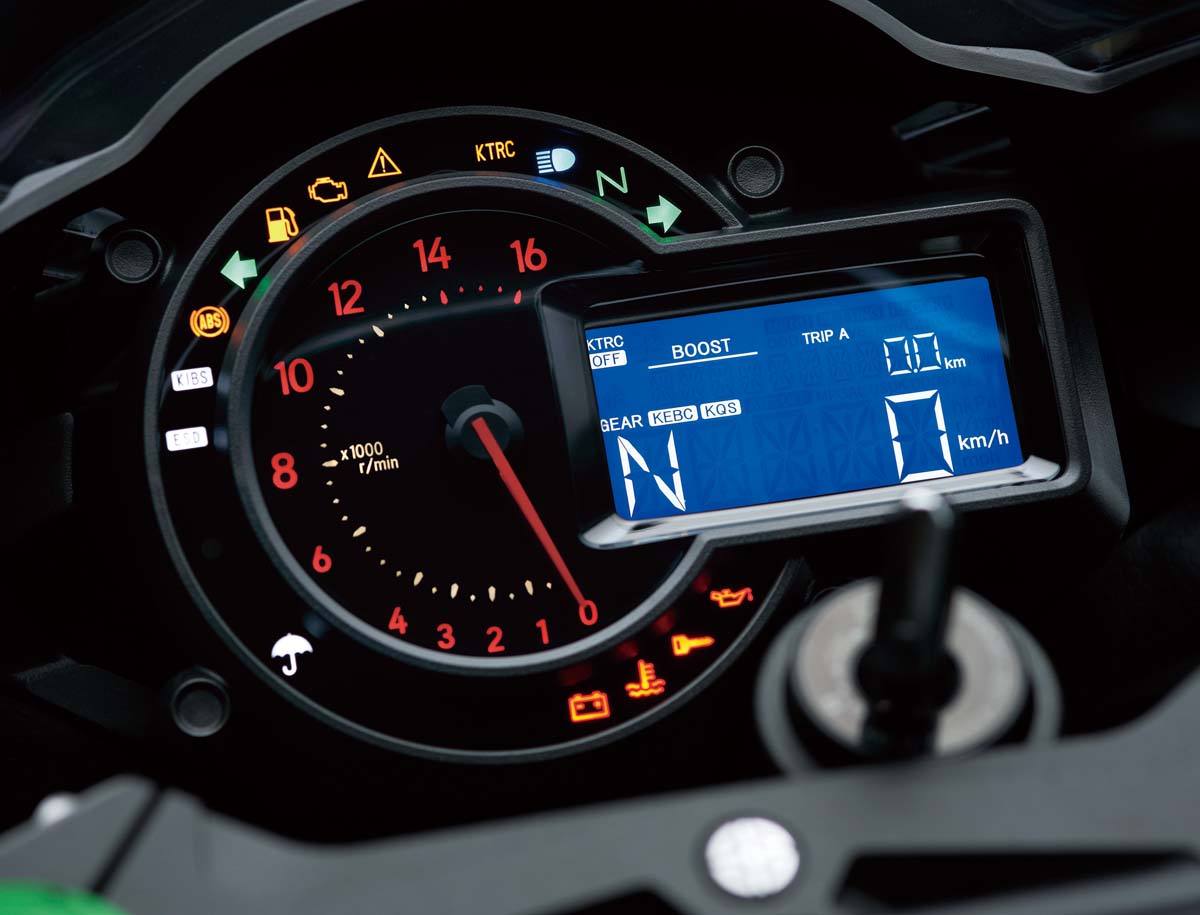 | 「Ninja H2R」及「Ninja H2」的電控是由Bosch所製作,基本上可以直接透過把手上的開關及螢幕顯示來改變設定。 |