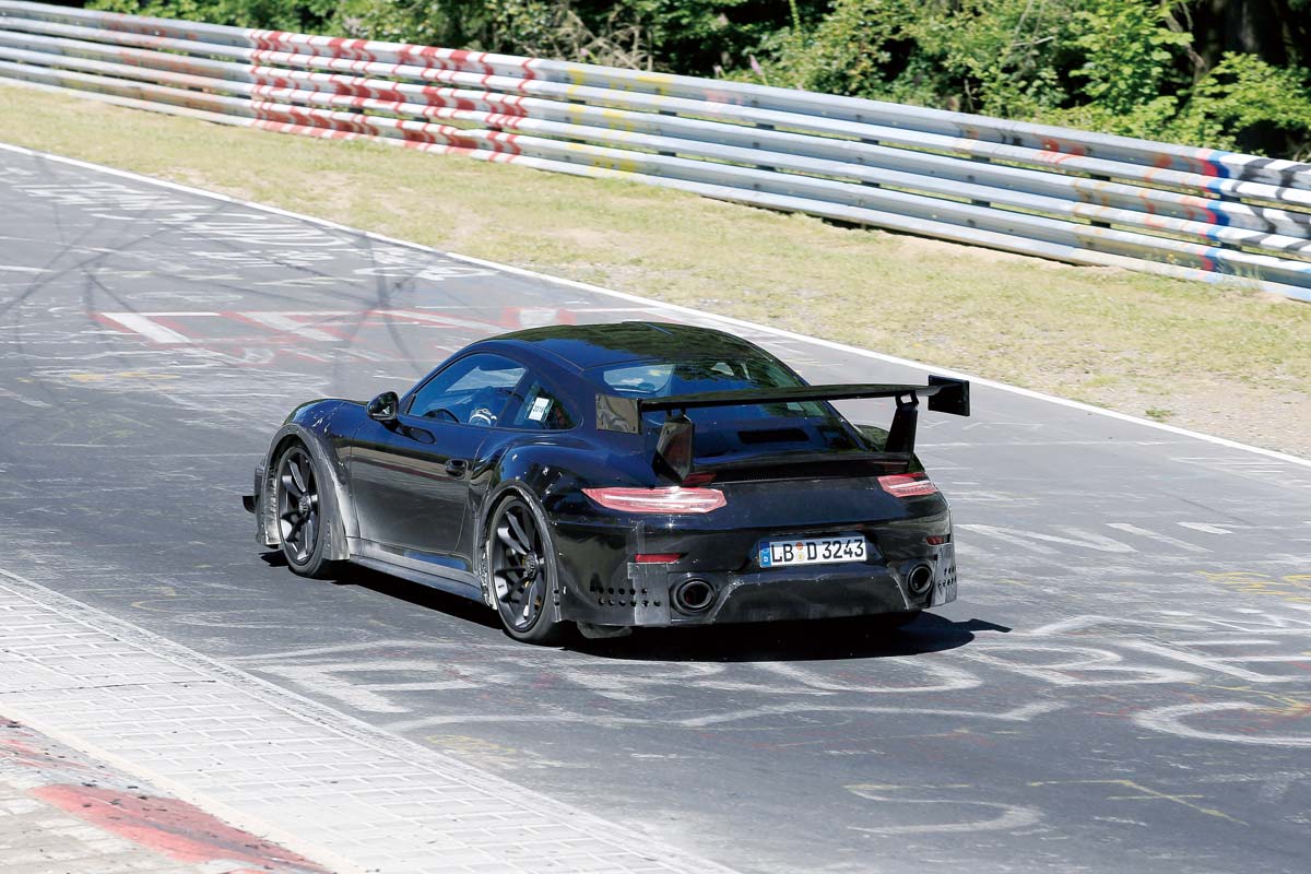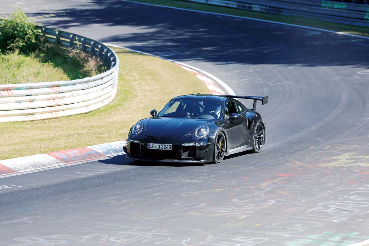 Porsche 911,在德國紐柏林賽道高底起伏的154個彎道間穿梭自在,如同刀切豆腐般俐落暢快。因為它的身分並非等閒,而是991世代小改款以後,推出的性能強化版911 GT2。新世代911 GT2有多熱血?從大得可晾衣服的尾翼、弧線完美的暴龜輪拱、前保桿兩端碳纖擾流片、單鎖孔大尺碼圈胎,都不難感覺到暴力的性能。動力方面,預計採用911 Turbo上那具3.8升雙渦輪增壓V6引擎,592hp以上的馬力輸出,將從後輪帶動這匹猛獸,但消息來源透露,全新後輪轉向系統,將帶來更高的殺彎能力。究竟真相如何?請靜待10月巴黎車展揭曉。