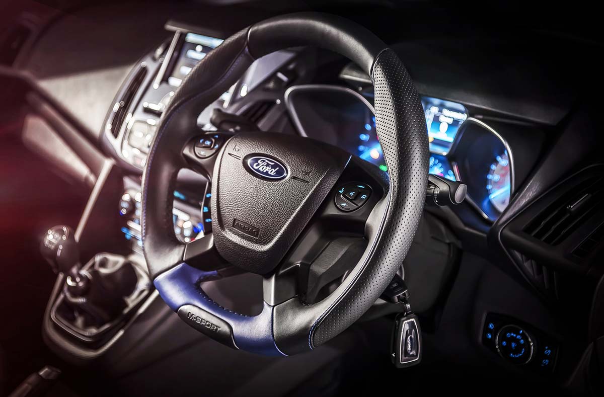 這次由和Ford WRC合作關係良好的M-sport,以及向來以夢幻奢華汽車改裝的Carlex Design攜手打造的Ford transit connect M-sport,在外觀改裝了前保桿總成、拉力運動風寬體輪拱、車身側裙、後尾門擾流板、後下分流器、雙出排氣尾管,讓這輛乖乖牌商務車搖身變成了張牙舞爪的拉力運動風MPV,內裝部分則改裝了加粗的M-sport運動方向盤、有藍色縫線的Nappa皮椅和M-sport限量腳踏墊。除此之外,在懸吊也改裝成Eibach短彈簧,讓龐大車身行駛時能穩固的服貼地面,車輪部分則是限量版18吋OZ輕量合金輪圈,並有銀、黑兩色選配,搭配米其林Primacy 3輪胎,如果還想再更霸氣的話,也可再加購拉力賽車車貼。