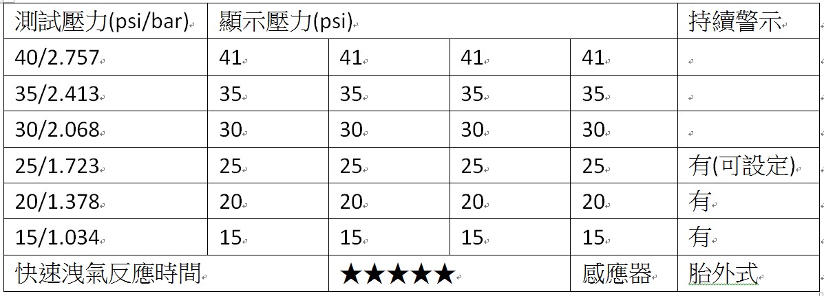 測試數據部分,除了40psi的測試項目出現很令人不解的41psi數值外,其他5個測試壓力項目的成績都完全吻合,表現相當亮眼,加上雖然是採用手機藍芽通訊傳遞胎壓/胎溫訊息,不過更新速度依然快速,毫不遲滯,整體表現令人驚喜。
