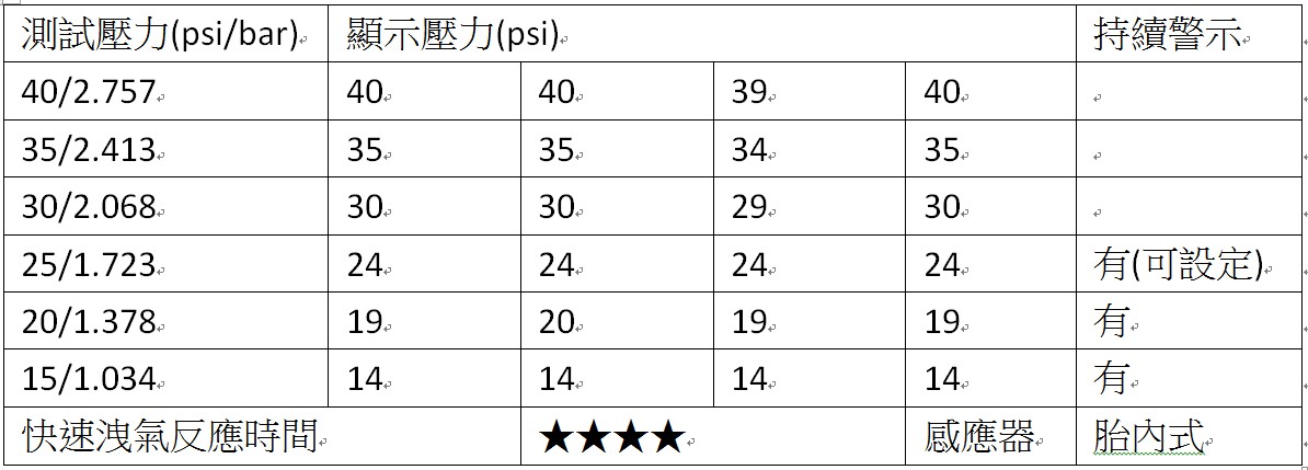 測試結果部分,雖然部分項目出現落差,但整體來說都在1psi以內,且集中在25psi以下的測試項目,對於多數人來說都不成問題。