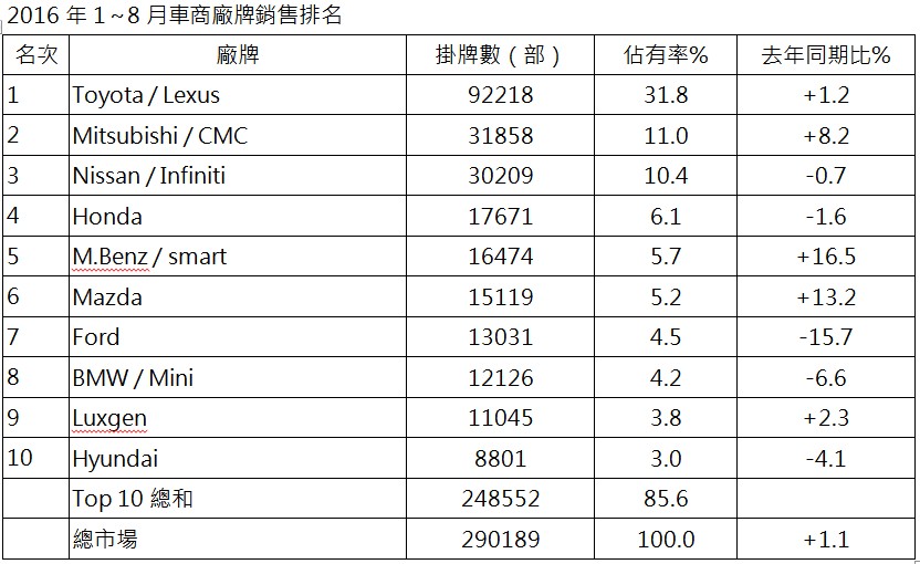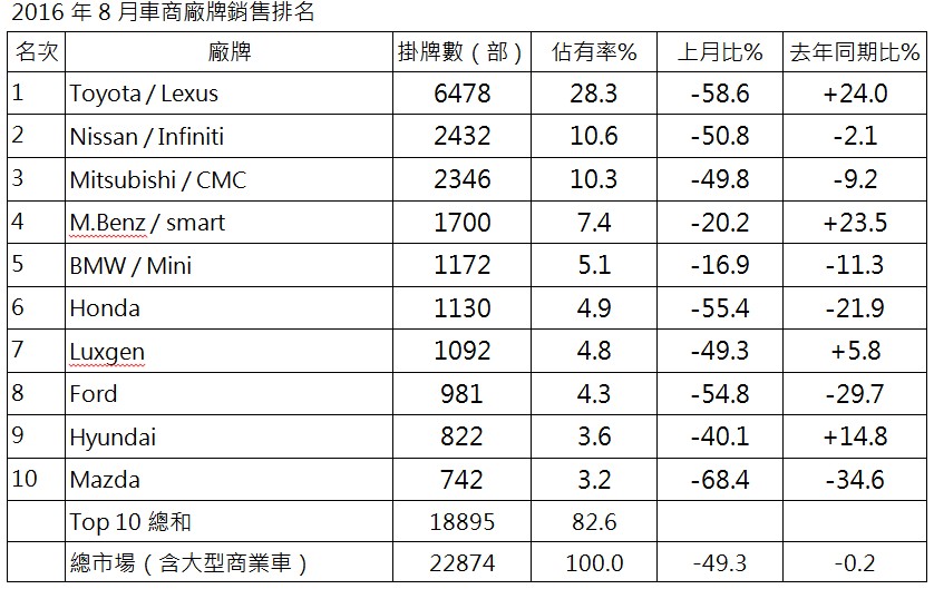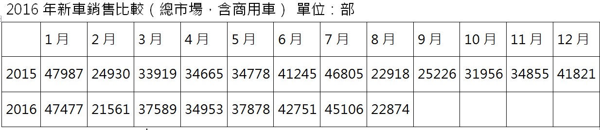 2016年8月新車市場銷售分析,民俗月效應持續減弱中?暑休只是為了再出發