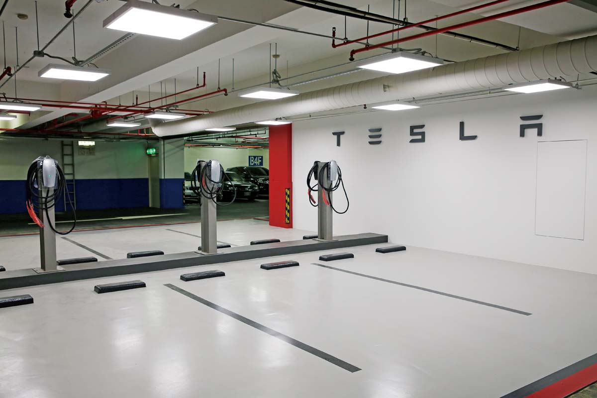 | 新光三越地下室已有Tesla的充電座,原廠表示未來商辦、景點將持續拓建充電設施。 |