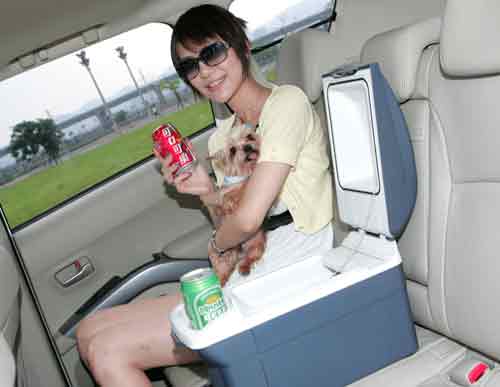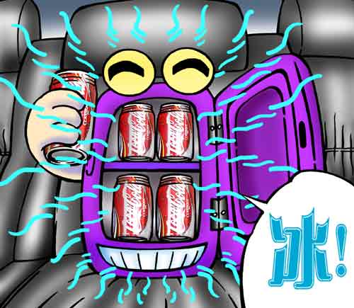 天氣熱體溫高的時候,想要立即消暑的最佳辦法就是一罐冰涼的飲料,不過再怎麼清涼的飲料若沒有馬上喝掉,拿到高溫的車上還是很快地就不冰了,此時車上若能有個冰箱就沒有這個困擾,而採用致冷晶片為冷卻心臟所製造的車用冰箱,就是為了這目的所開發的產品。