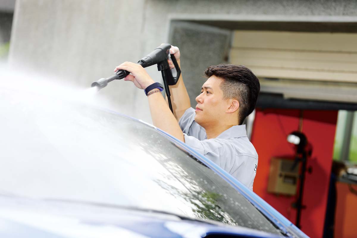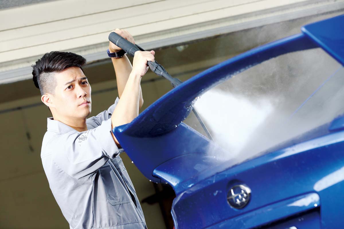 Tip:平常開車容易累積泥塵的地方,沖水時一定要加強清潔。特別是車輪後方鈑件、輪拱附近、車身後半的空力套件,輪拱內部也記得一併沖洗。