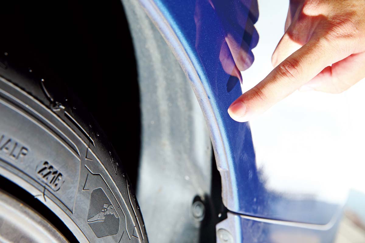 | 輪拱周遭、甚至輪拱內部這些比較容易髒汙的地方,沖水時別放過。 |