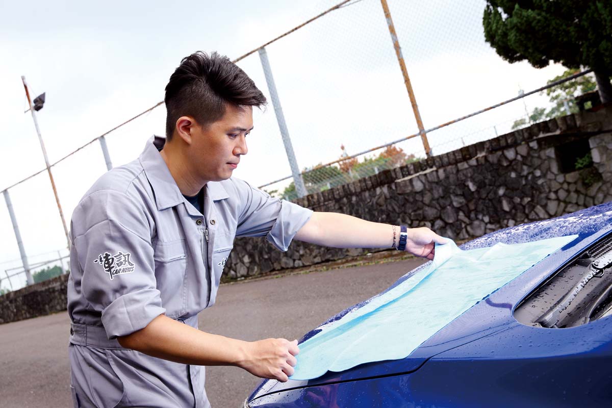 Tip:擦乾車身的時候,還是要維持從上而下的原則為佳,萬一擦了車側,發現剛剛最髒的車體下半部沒洗乾淨,然後又去擦玻璃與其他地方,那就容易造成傷痕啦。