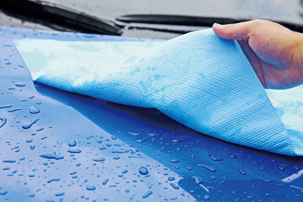 擦乾車體聽起來好像沒什麼大不了,但卻也是最容易忽略、製造刮傷的地方。最要緊的就是,選條吸水力強又乾淨的乾布或毛巾來擦拭。吸水布如果帶有泥沙的話,辛勤擦拭水滴的過程,就等於是用力在傷害愛車的烤漆。這也是為什麼很多愛車人都不愛去加油站附設洗車的原因,雖然花費低廉,但如果因為擦車巾不夠乾淨,或一條毛巾擦太多車這種細節疏忽,而刮傷愛車,那還不如多花點錢去專業店家或DIY來得安心。