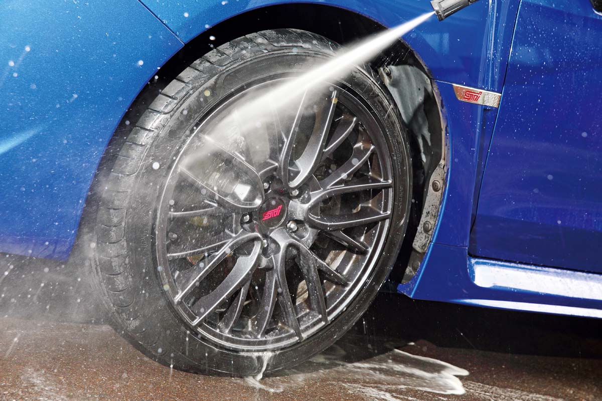 | 洗刷之後再用高壓水柱沖洗,胎面也要順便沖淨。 |