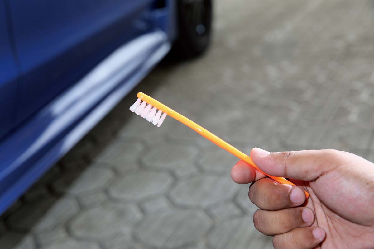 | 千萬別小看這隻「用過」的牙刷,因為它是清潔車輛縫隙的最好幫手,不過要記得選擇刷毛較軟且用過的牙刷,以免刮傷車漆。 |