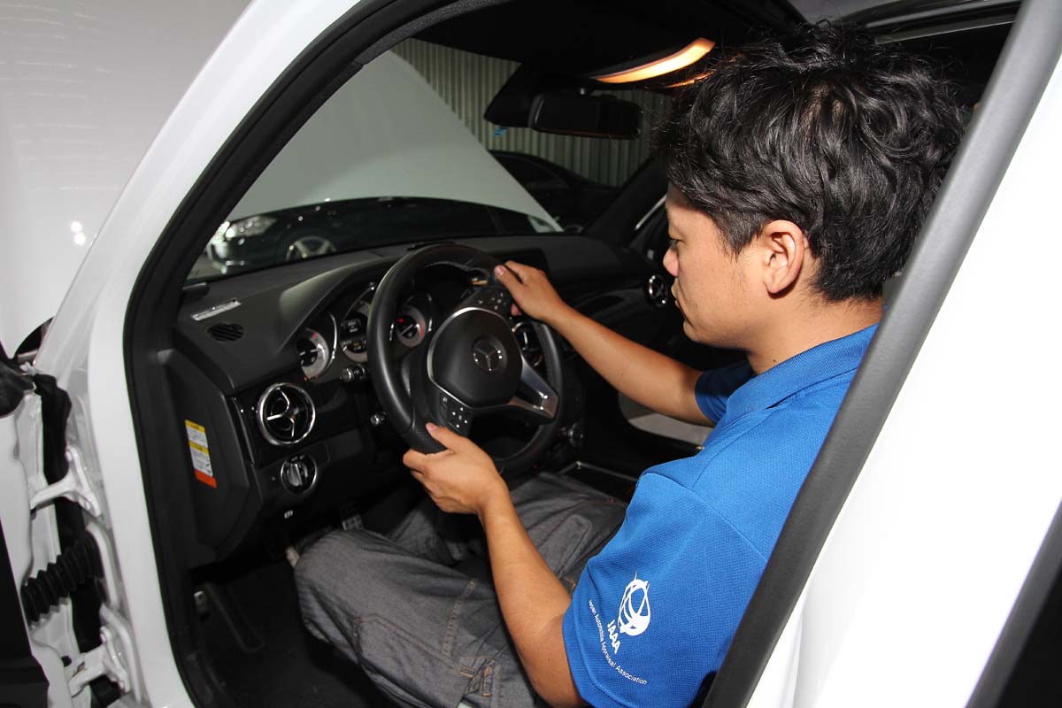 之後原地轉動方向盤,檢查動力方向機的輔助力道是否正常,或是否有異音;再來測試包含每個電動窗、天窗在內的電系系統的作動是否正常,最後則是開啟冷氣系統,以溫度計測量冷氣出風口的溫度是否降至合理範圍,以測試空調系統的作動是否正常,這些就是GOO鑑定中,針對機能件的測試過程。