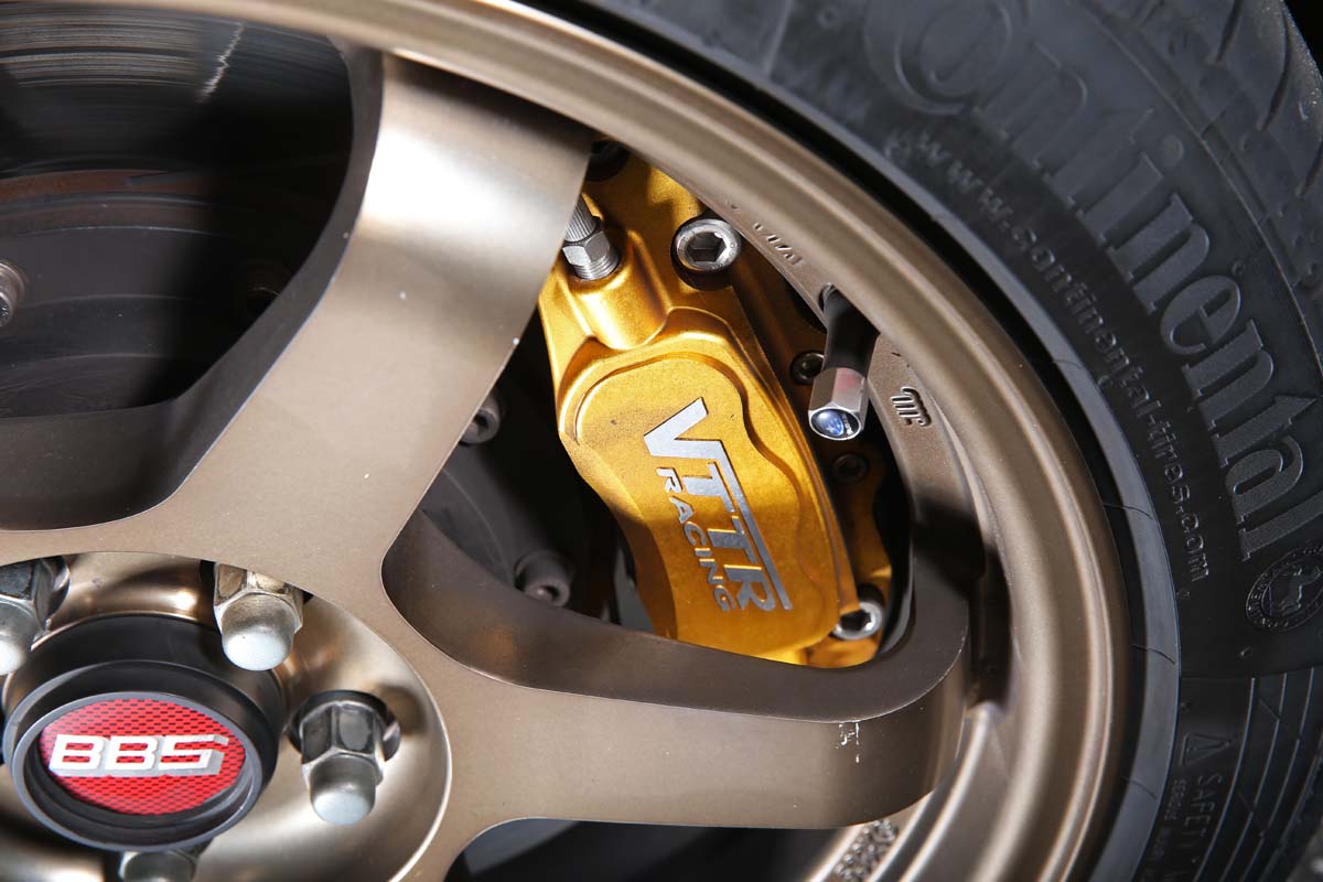 | 為對應2.5L的強大動力,前後煞車系統皆已改裝VTTR前大6、後小6活塞升級套件,煞車的踩踏感十分精準,高速駕馭可以更加放心。 |
