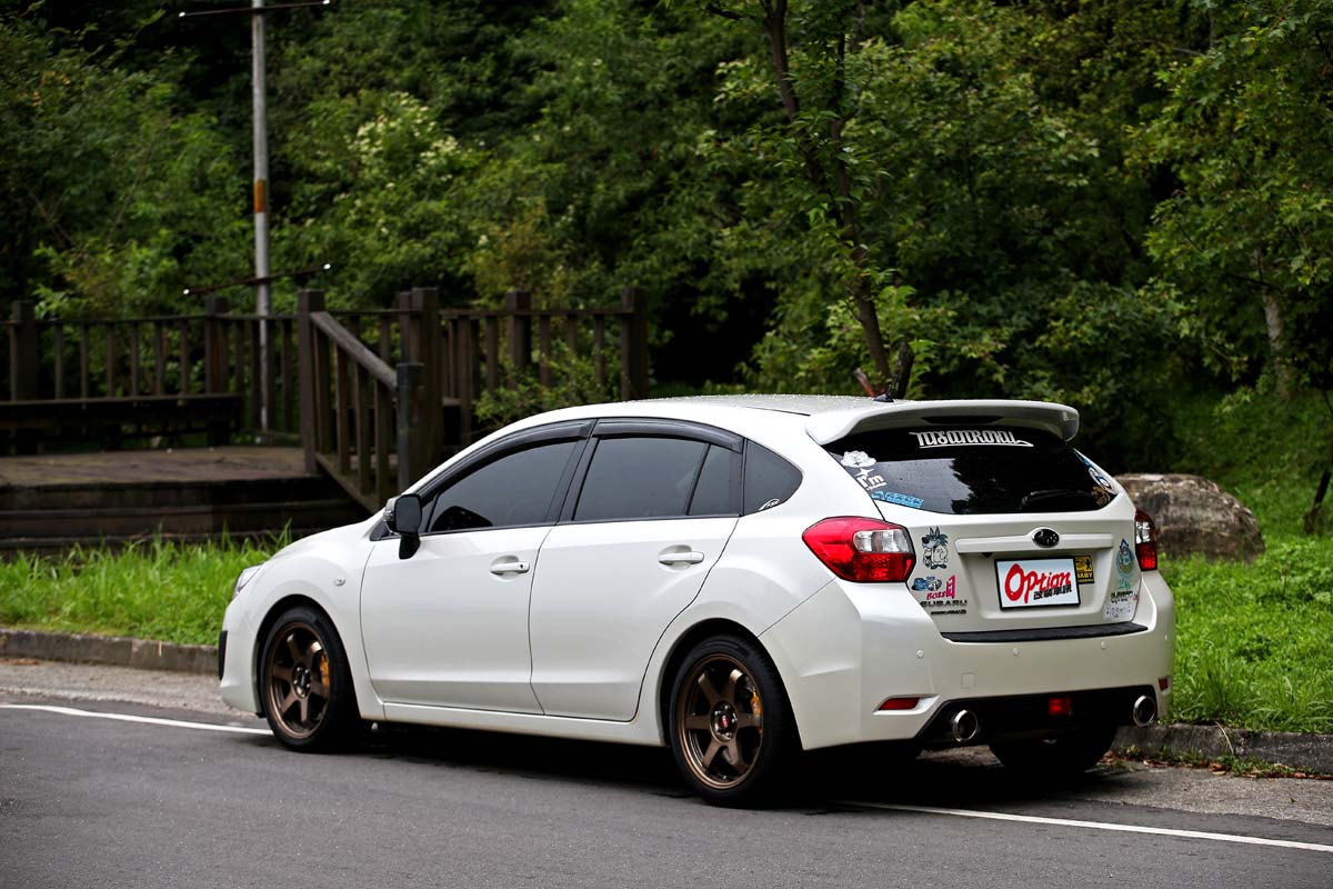 | 17吋Rays TE37 SL鋁圈配上Nitto NT830 215/45 R17輪胎,這輛Impreza的外觀效果還不賴。 |