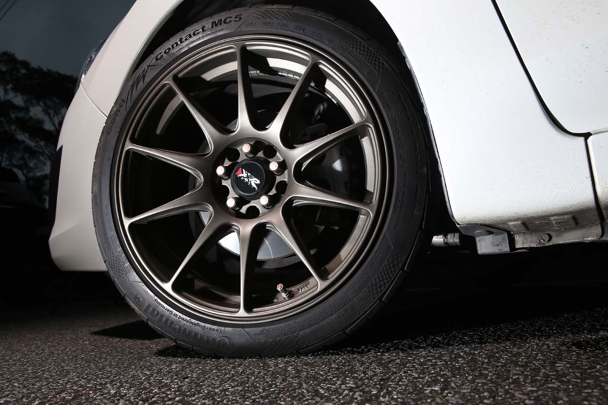 | 改裝短彈簧提升穩定性,圈胎則是17吋XXR搭配Continental 215/45 R17輪胎,聽說此車主是個殺手級的人物,這樣的設定應該夠用吧! |
