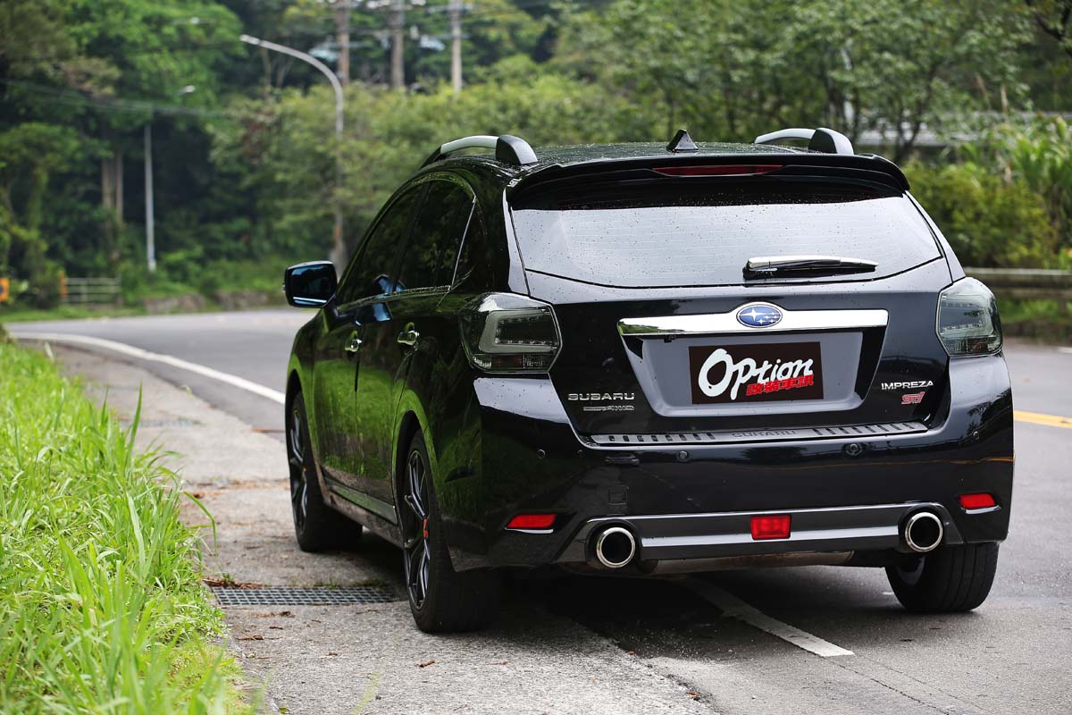到達店家時並沒有察覺這輛Impreza,但在前往拍照地點的途中,從後視鏡看到這輛Impreza突然有種莫名的感覺:「這是XV吧!」應該是車頂架讓筆者有這樣的錯覺吧!在與車主:耀董的訪談中發現,這是俱樂部裡的DIY達人,首先是將頭燈置入LED日行燈,水箱護罩是從國外買回之後自行挖空黏上鐵網而成,因此乍看之下,也頗有幾分Forester的感覺,來到車尾,尾燈已經改為透明式樣、改裝Toyota 86的尾段排氣管,以及自行包覆碳纖維的下擾流板,每個小細節都能看出車主對Impreza的用心與創意。