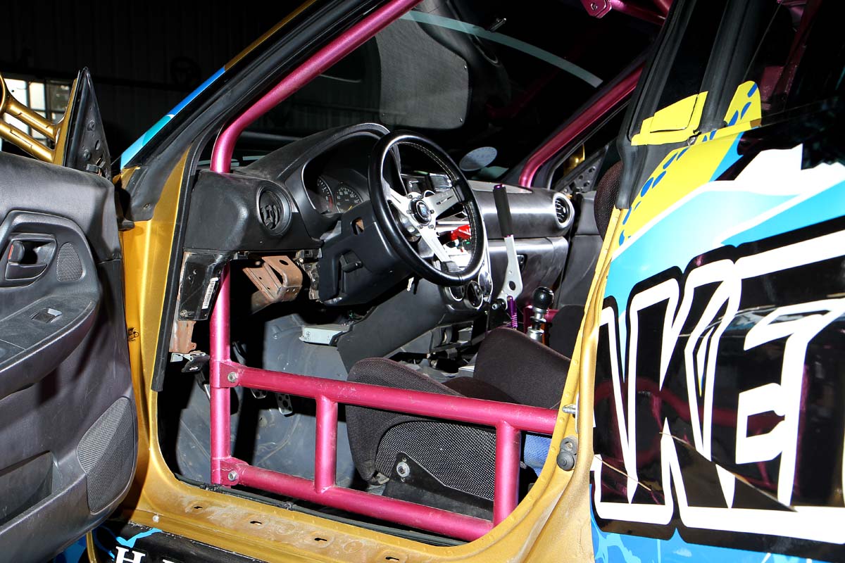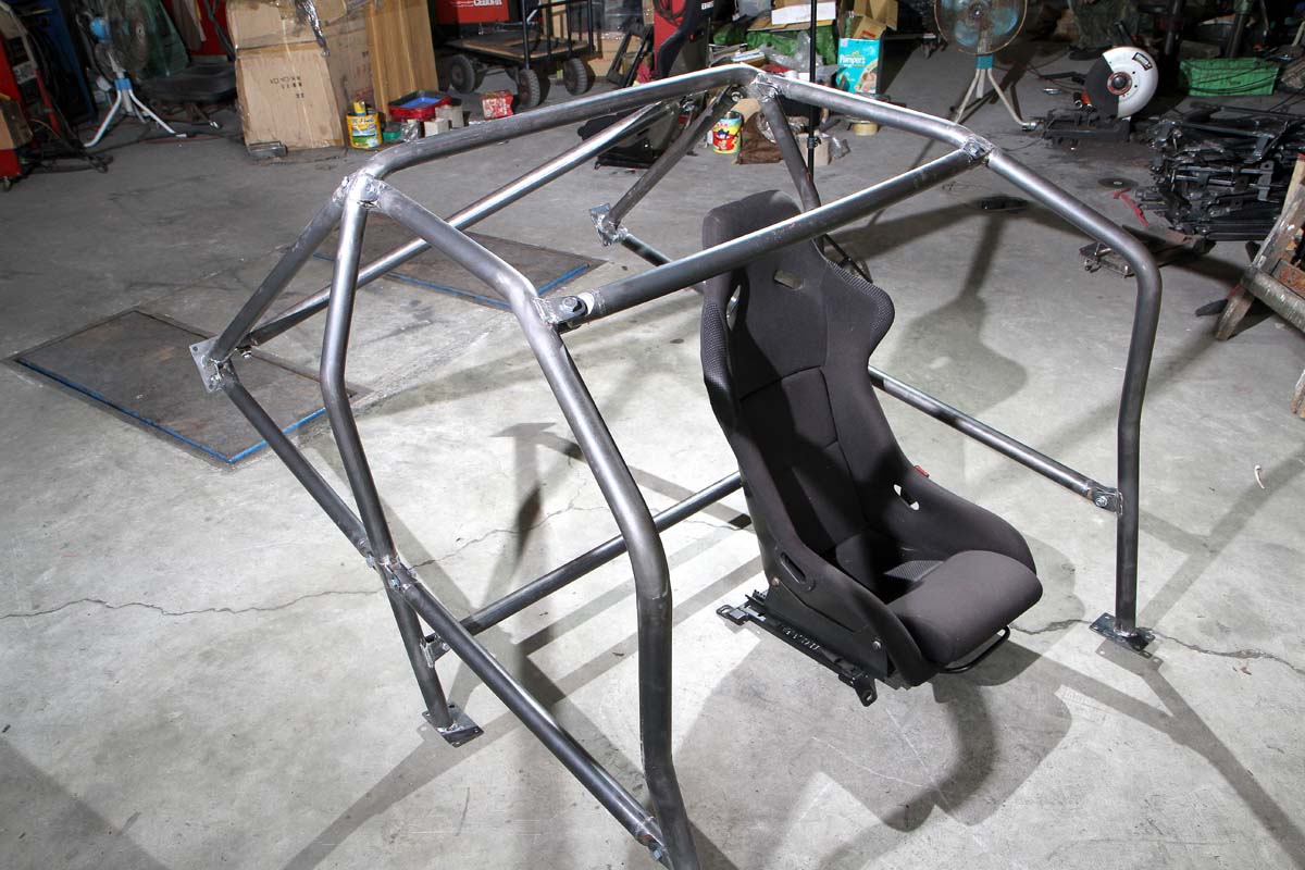 | 如果參加的是車體拉扯比較激烈的賽事,防滾籠的密度就會更高,甚至駕駛座的Side Bar要燒成兩隻或X型,才能減少車身側撞時的車門擠壓程度,保護車手安全。 |