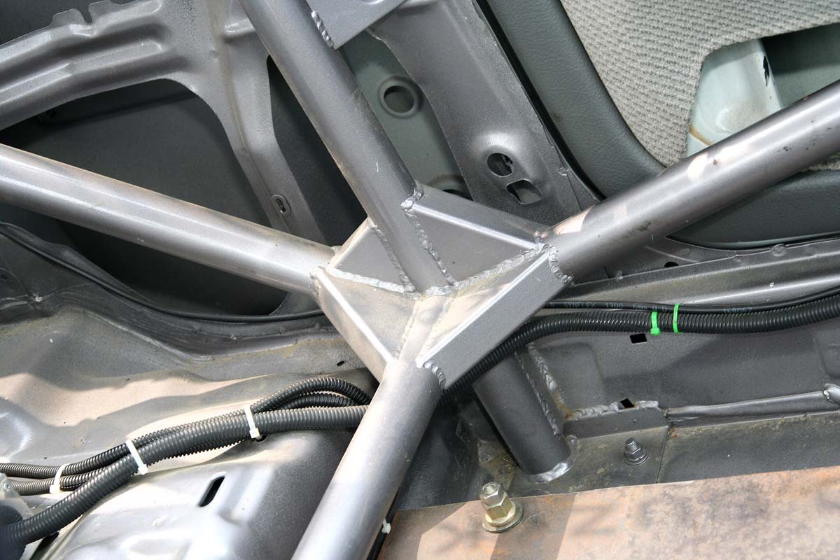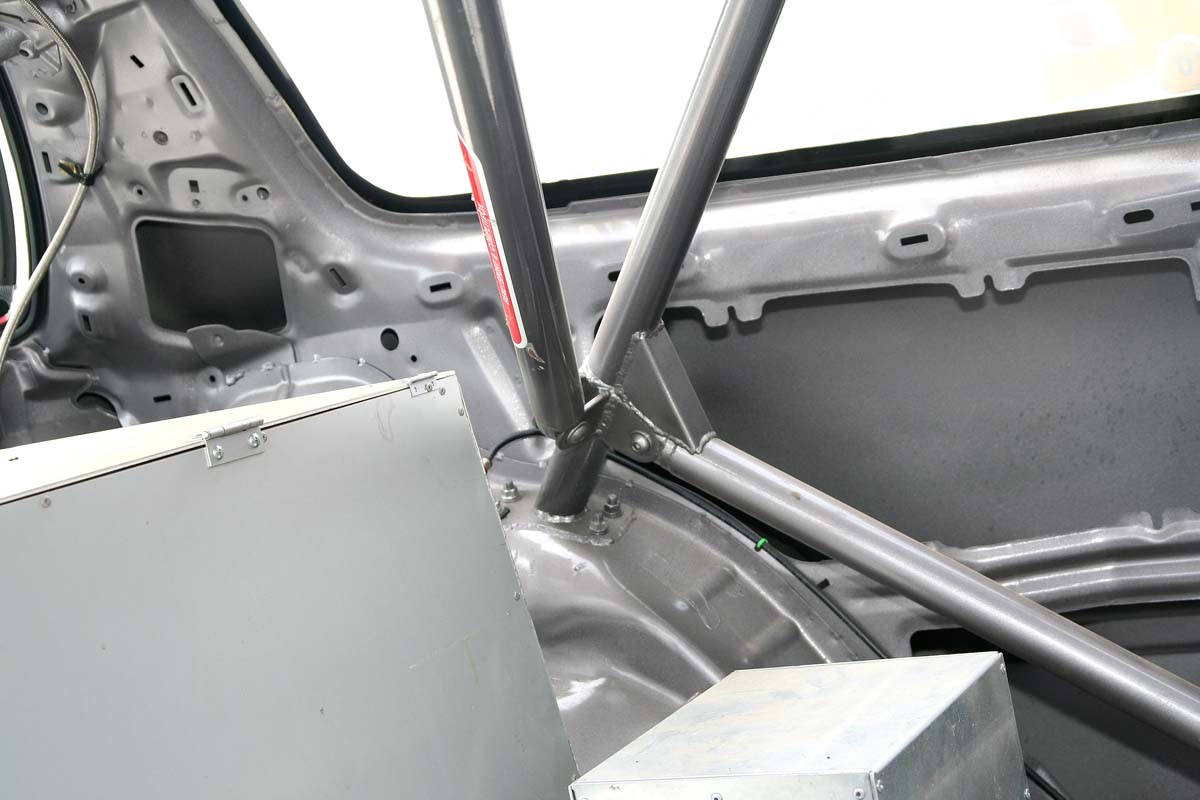 | 有時為了安裝方便,防滾籠支架的接點會採用鎖螺絲的方式來固定,此時螺絲的粗細就很重要,且有時為了進一步強化剛性,還會在支架交會處焊上三角板來補強。 |