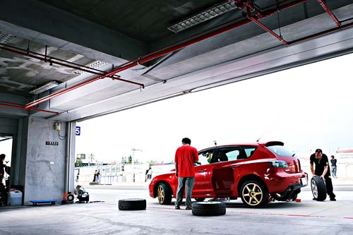 對於分秒必爭的賽車比賽,輪胎抓地力的好壞,對成績的影響有時比馬力高低更大,有鑒於近幾年來,市面上多出了許多新款高性能街胎,加上很多車友都不知該挑選哪種輪胎,才能參加本刊舉辦的最速街車挑戰賽,因此本刊特別舉辦此最強街胎測試單元,藉由最「硬斗」的賽道單圈成績來分出高下。而為讓每款輪胎都能盡量在相同的條件下進行單圈測試,在研擬測試方式與尋找測試車輛時,可是讓編輯部費盡思量,原本打算找一部大改的Impreza GRB,後來考量到改裝過的車輛,歷經一天的惡操後,性能表現可能無法像原廠車般穩定,因此最後決定向聯結汽車商借一部日規右改左的舊款Mazda 3五門手排車款,這部車從動力、內裝、底盤到煞車等,全部都是保持原廠未改狀態,雖然測試起來的單圈成績較比賽車來說會比較慢,不過穩定的原廠車況,希望能藉此讓每款輪胎的測試都能盡量公平。