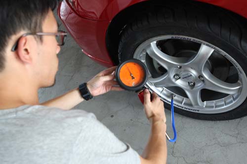 | 出發前每條輪胎的胎壓都會設定在30psi,並且使用同一個胎壓計測量。 |