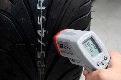 | 每次車輛回來時的時間最刺激,要以最快的時間測量四條輪胎的胎壓與胎溫數據,才不會產生太大的誤差。 |