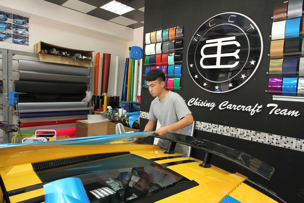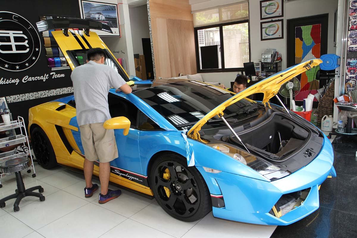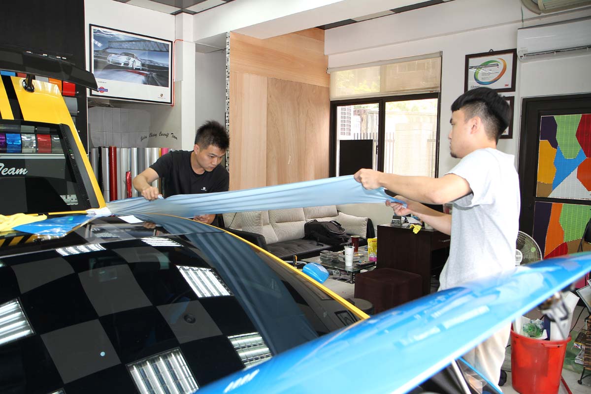 | 車身貼膜最少需要二個人以上來共同施工,這樣不僅能加快工時,還能確保膜料的張力平均,減少施工時的失誤。 |