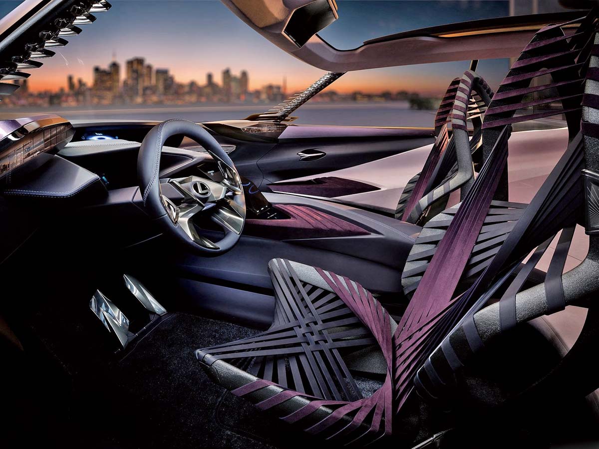 打開車門UX Concept的亮點也依舊滿滿,對開式門板設計不僅方便進出,無B柱設計更讓座艙空間竭盡所能的最大化,更厲害的是裡頭座椅採取編織式簍空設定,因此厚度輕薄到幾乎感覺不出存在,不僅換來最大可能的後座腿部空間,同時也造就前衛至極的設計感,加上根本科幻等級的3D立體投影式儀錶以及觸控式車載介面,如果量產版本果真如此呈現,那麼我們根本可以合理懷疑Lexus是不是已經在51區發現了外星科技?