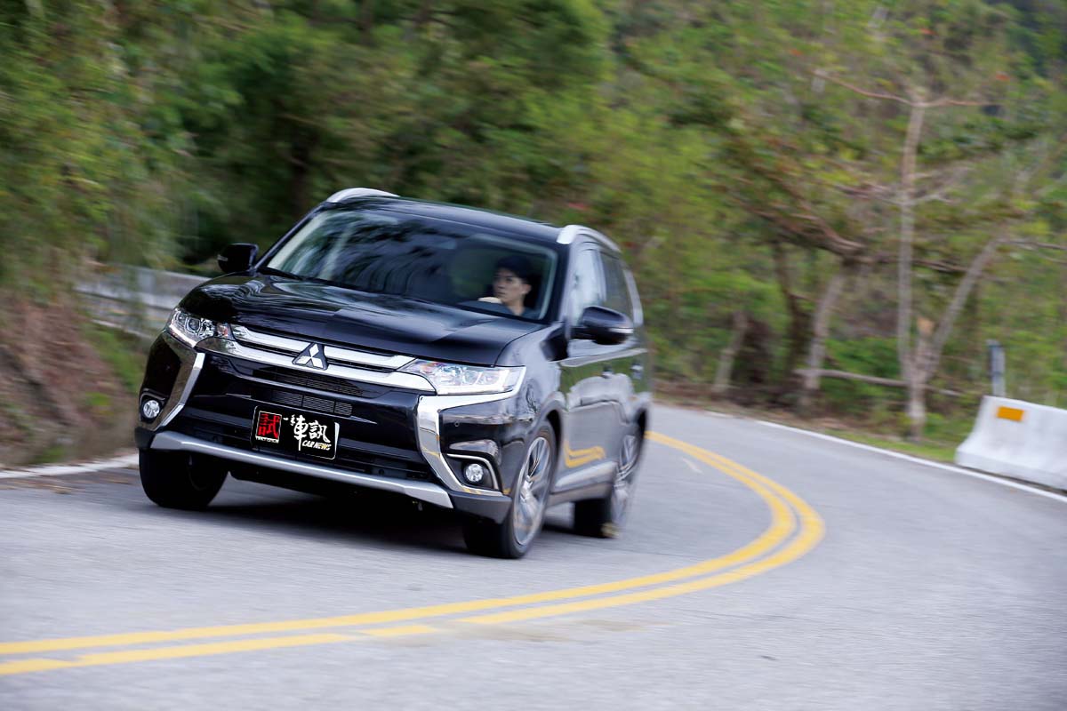 小改Outlander除外觀進行大幅修改外,動力部分也有一併變動,其中引擎仍維持具有168hp/22.4kg動力的2.4升汽油引擎,不過CVT變速系統則換上全新世代產品,根據原廠人員表示,新世代CVT針對輸出方面進行改良,藉以提供更好的加速表現。當天實際上路,車內乘載三名乘員加上工作器材,總計約有近1.9噸的重量,踩下油門雖有著讓人感到頗為輕盈順暢,但礙於車重關係因此也沒有過多強勁的推力,之後我們試著再進一步加重油門,在CVT特性驅動下整體能量以平順方式呈現,對於一部主要乘載家人的休旅車,一般來說不會要求它有強而有力的加速力道,因為這樣會被小孩罵說「爸爸你不要亂開車啦」,不過如果只有一個人時,就可以透過手排模式來感受加速衝勁的快感。