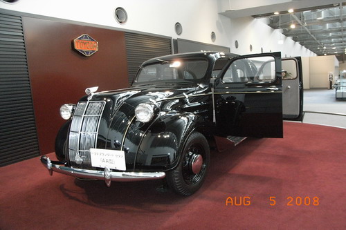 | 這是Toyota在1936年所生產的第一部具時代意義的四門乘用轎車-「Model AA」,排氣為3389c.c.,最大馬力為65匹,也是第一款採美式流線造型設計的車款。此車款當時在名古屋的販售價格為3350日幣,總共生產了1404部。 |