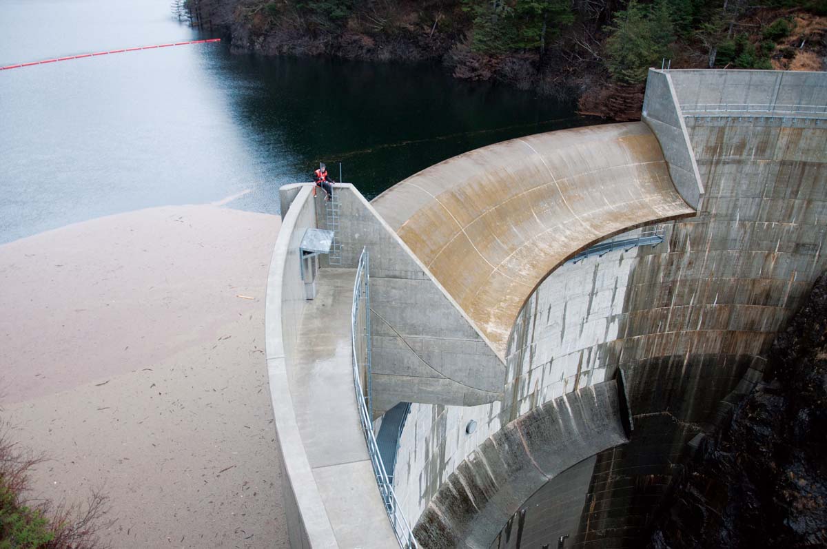 | 光壩體就高達68.58公尺,在壩頂維修作業時,簡直就像漫步在雲端。 |