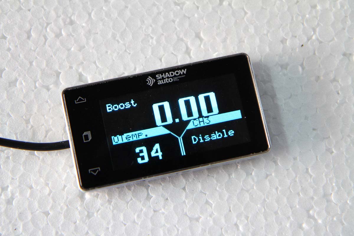 | 這款由Shadow所推出的OLED FD多功能顯示器,可偵測包含渦輪壓力、水/油溫、油/燃壓、排溫與電壓等數值,全數採用車規電子式感應器,準度相當高,筆者是用其渦輪錶的功能,來做為壓力對照基準。 |