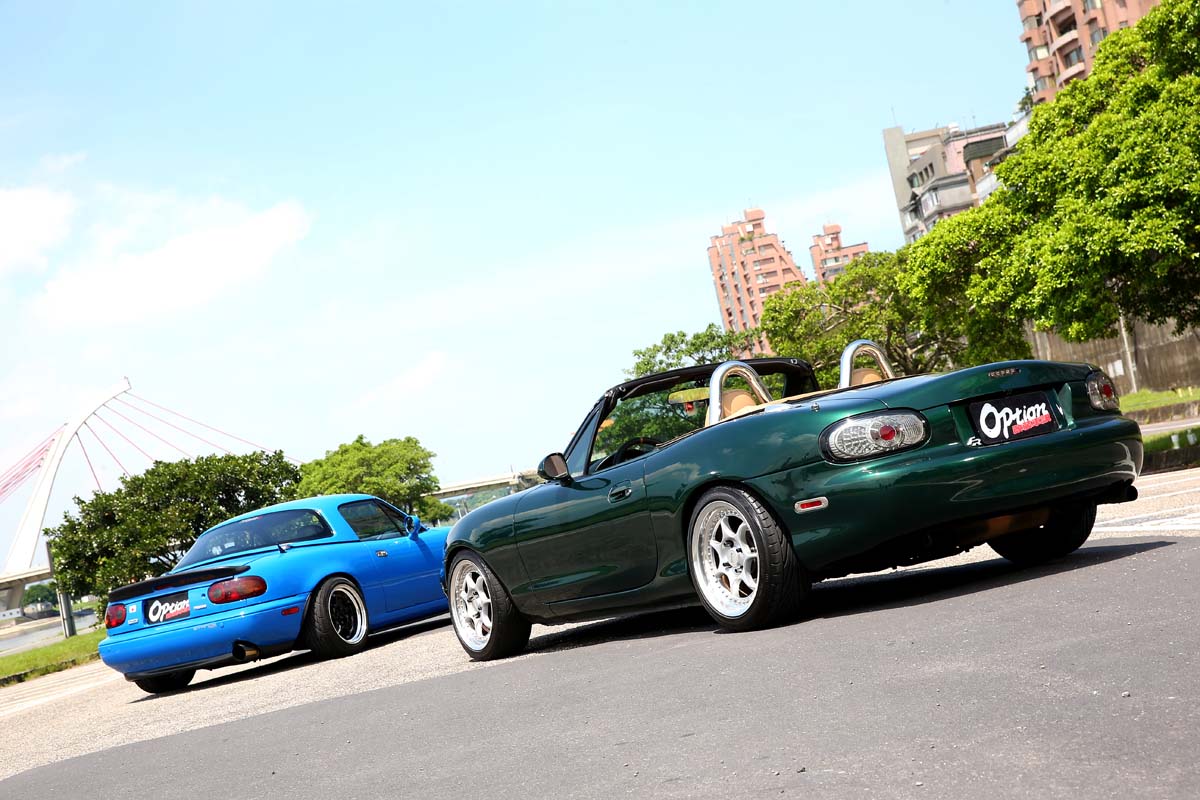 | MX5前後期也是相當適合走優雅路線,其實這個車原廠就沒有什麼空力套件,保持乾乾淨淨的外觀,與一組洽到寬處的輪圈就是美。 |
