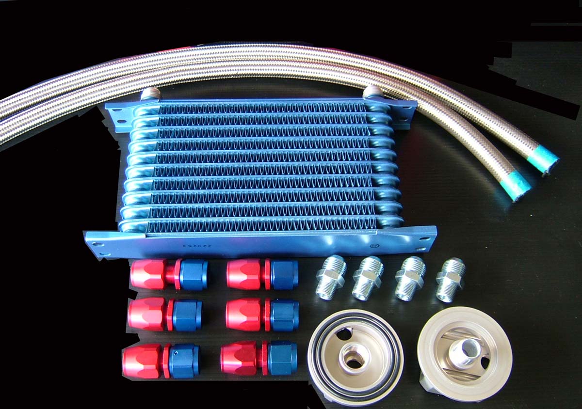就跟水溫的要求相同,油溫也是儘可能的維持住恆溫性較好,這部分可以透過加裝「機油冷卻器」來達成。機油冷卻器尺寸的大小,通常是以排數多寡做為區分,這個排數便是計算其正面橫散熱排的數目,規格自最小的7排到最大的50排不等。一般7排、10排的型式是給K-Car派的迷你車或自排油Cooler所用,2.0升以下的車種大約是適合13排到19排,再大的車款或高性能大馬力車至多也只要用到30排左右,超過則是專門對應機油泵浦強化過的賽車。