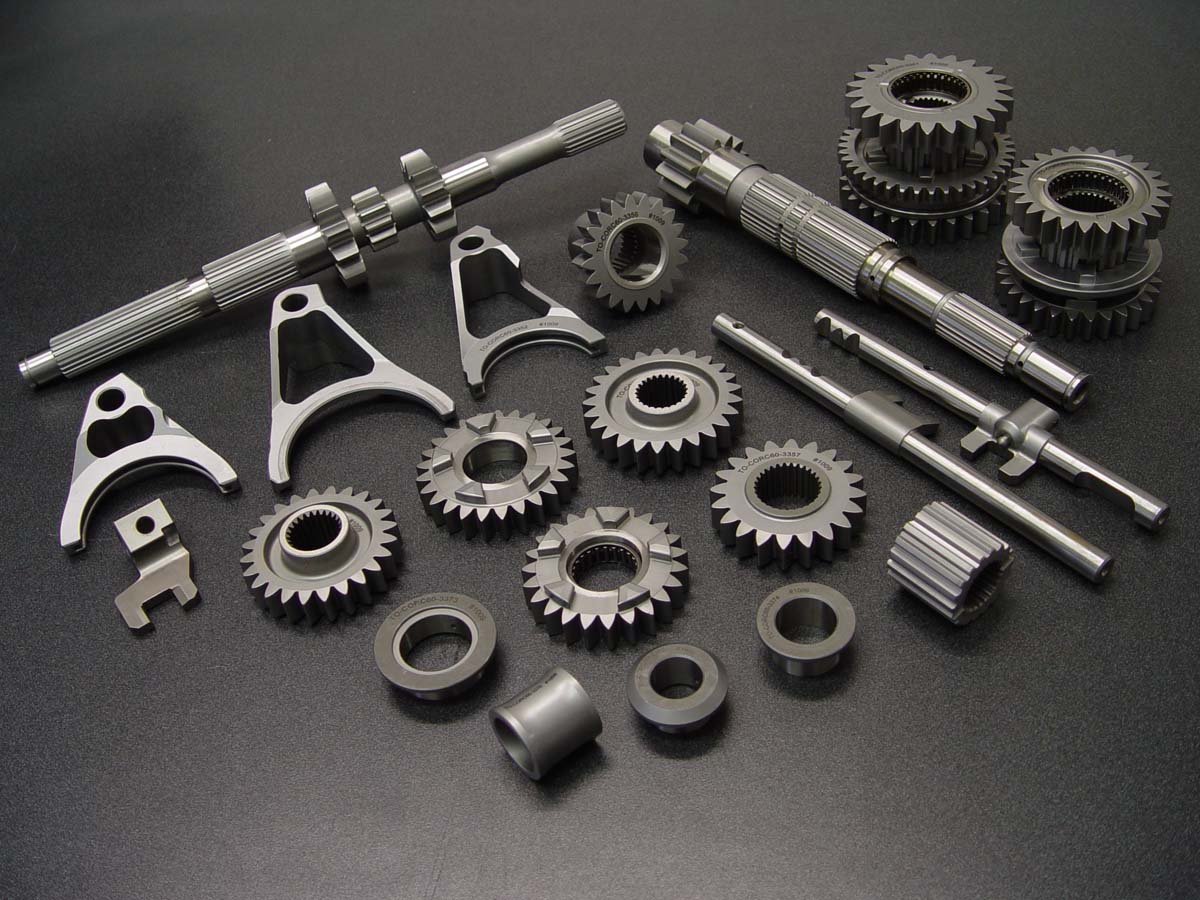 | 手排變速箱齒輪強化的最終極作法,就是更換所謂的「Dog Gear」的直齒齒輪,所有檔位齒輪都從原本的斜齒改成直齒,不只厚度與強度提高,換檔時還不需踩離合器即可推入檔位,缺點時運轉時噪音很大,一般倒車檔都是直齒設定。 |