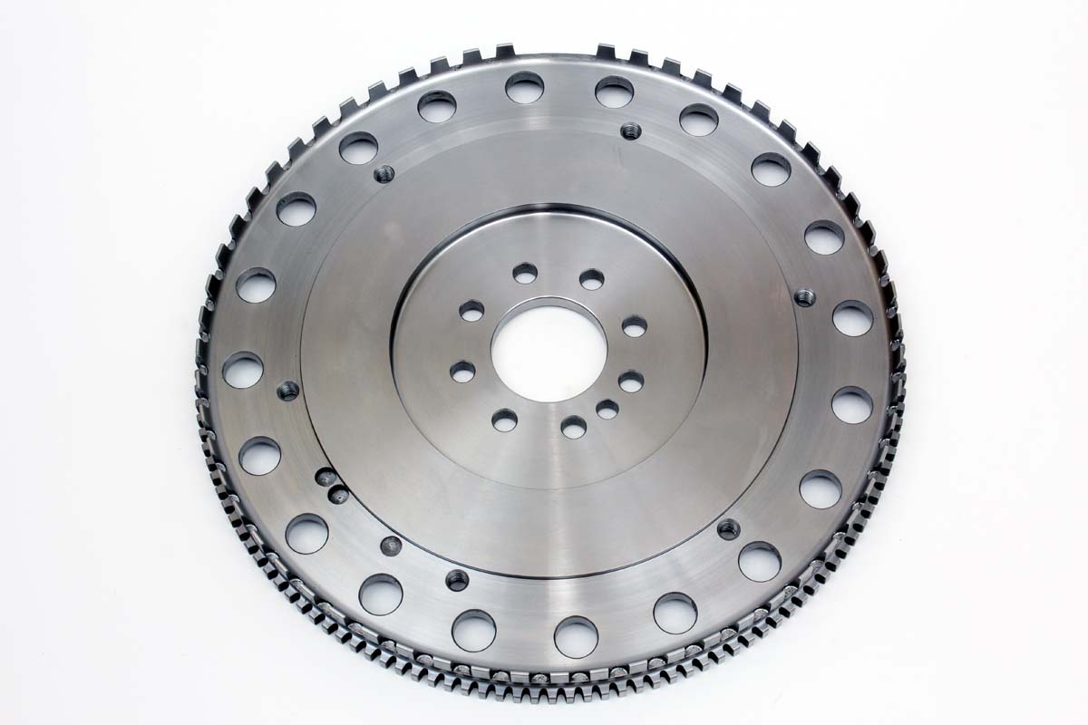 | 飛輪輕重的配合與引擎特性、變速箱齒比也有很大關係,好比高轉速引擎便該搭配較輕的飛輪,而在輸出夠快的前提下更能用到密齒化變速箱,反之低轉速引擎及疏齒比變速箱就應使用較重的飛輪,以確保扭力的完全發揮。 |