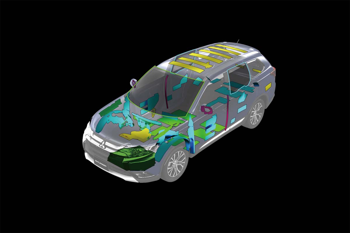 | 透過「NVH 卓越隔音減震工程」的努力,NEW OUTLANDER因此有了更加靜謐舒適的乘坐感受。 |