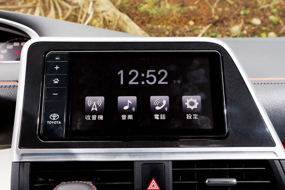 | 音響主機採用Drive+隨行駕駛系統,8吋的觸控式螢幕內建有藍牙模組及衛星導航系統、車輛設定等功能。 |