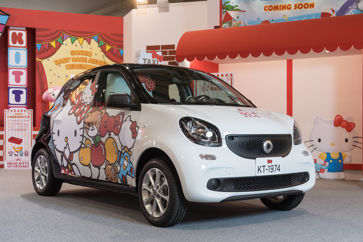 smart總有用不完的創意,不僅顛覆傳統用車思維,更完美實現「我是可能」宣言,打造如「smart巨型汽車咖啡機」、迷你樂園中的「smart旋轉木馬」等快閃活動,一次次的驚艷車壇,化不可能為驚嘆號!這次,smart要與日本三麗鷗旗下最知名的卡通人物Hello Kitty一起「裝可愛」!不僅smart派出旗下都會微型車特派員forfour華麗變身,同樂【Hello Kitty Go Around!!歡樂嘉年華】活動,更推出一系列創意與好康活動,一起裝可愛又抽大獎。來【Hello Kitty Go Around!!歡樂嘉年華】與獨一無二的Hello Kitty變裝車forfour合影留念,不只讓你可在社群網站上放閃展炫,還有機會直奔日本Hello Kitty樂園!參加2017台北新車大展再送精美小禮!