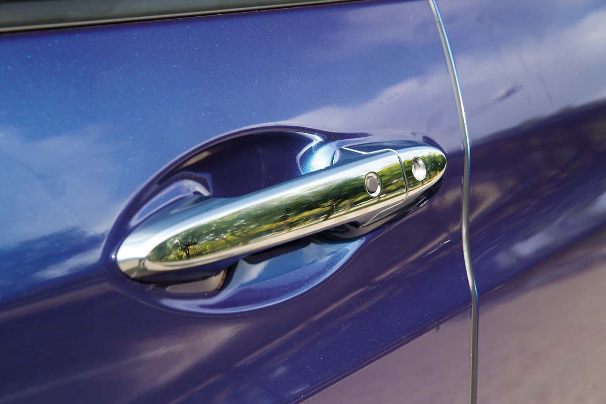 | 整合在後車窗的隱藏式把手,搭配S版前車門白金色鍍鉻把手,令人想起大詩人杜甫的飲中八仙歌:皎如玉樹臨風前。 |