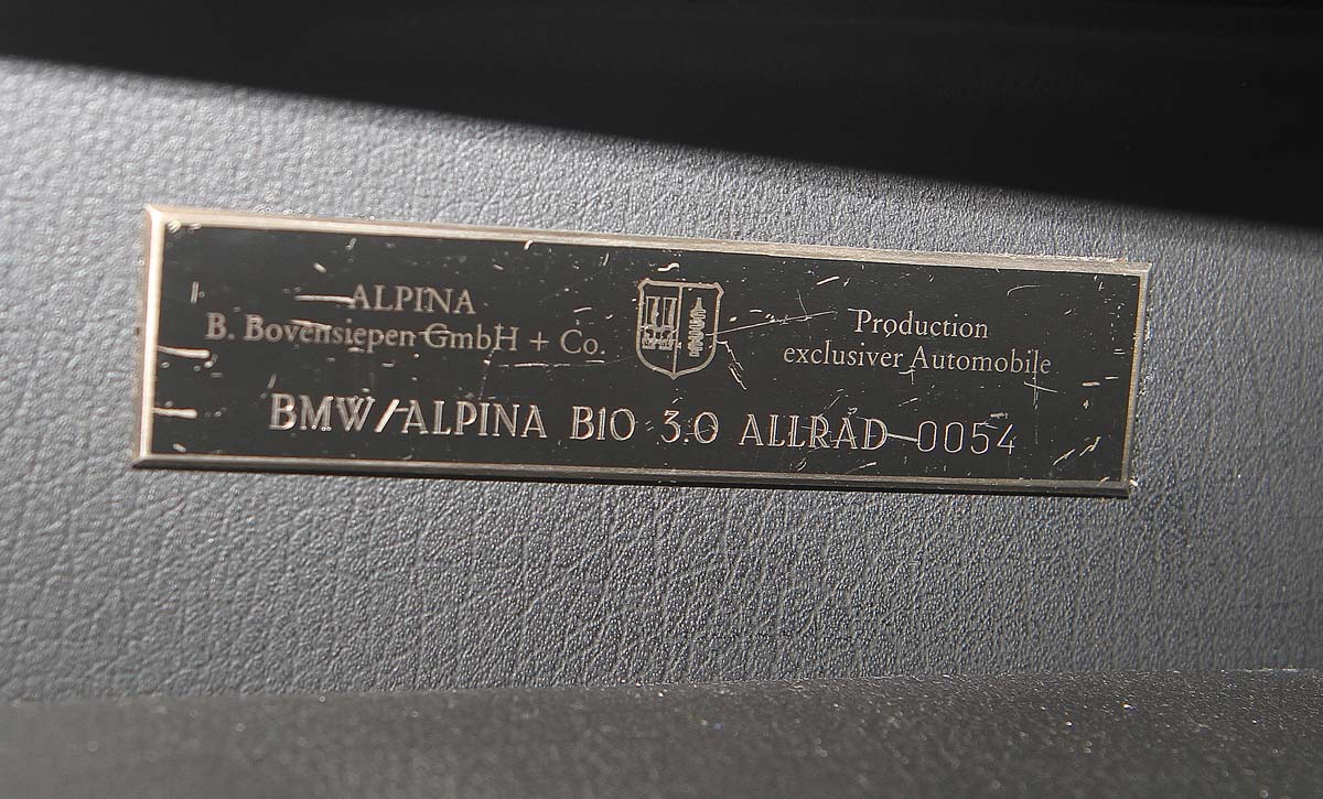 | 當時的Alpina車輛上還是大量沿用BMW的廠徽,而中控檯下方的銘牌,則說明著這部車是第54部生產的E34 B10 3.0 Allroad。 |